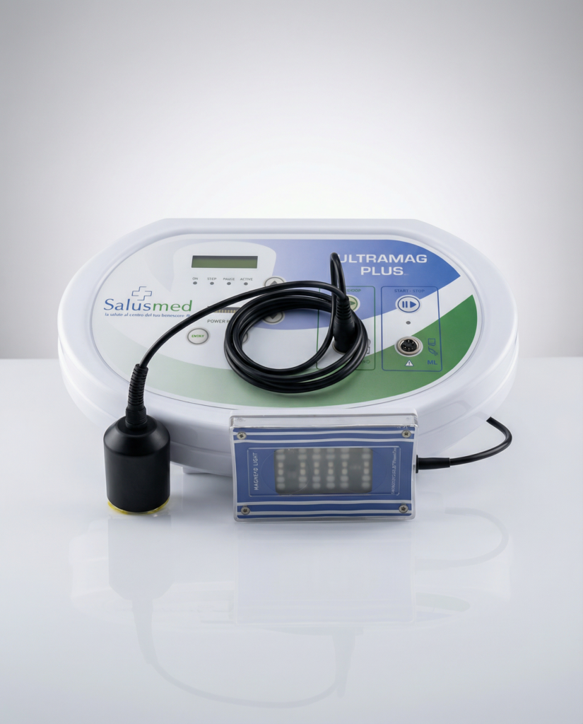 ULTRAMAG PLUS è un innovativo dispositivo multifunzione progettato per trattamenti sia terapeutici per i dolori che per trattamenti di benessere, estetica e recupero fisico, tutto in un unica apparecchiatura.